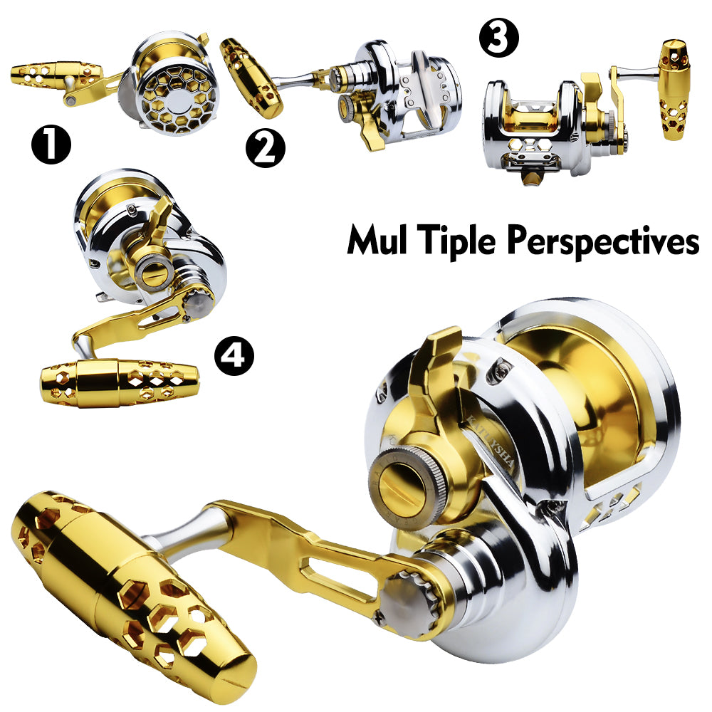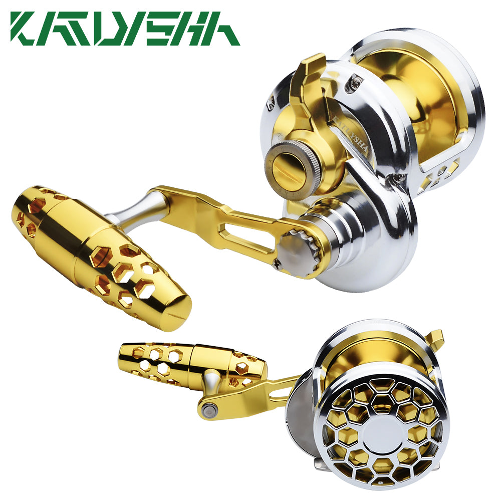 Elevate your angling with the KSJ12L/R01. Its sleek silver - gold design meets a powerful 40KG max drag and a smooth 5.7:1 gear ratio. Built for durability, it excels in jigging and trolling.
