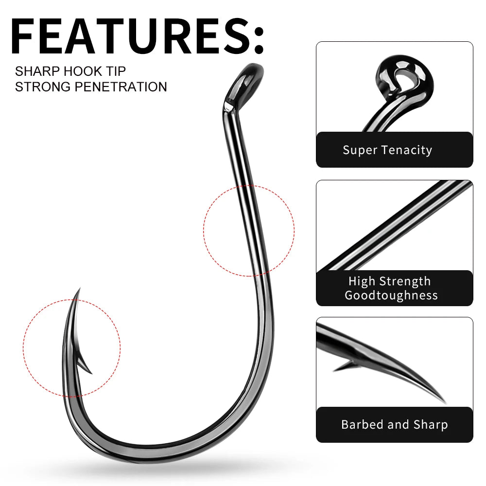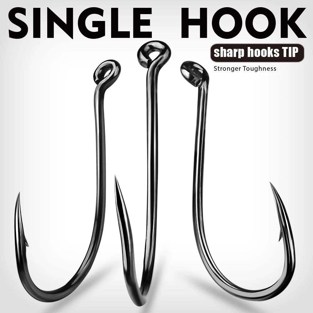 KATUYSHA 50PCS J Hooks 1/0-2/0-3/0-4/0-5/0# Barbed Octopus Fishing Hook High Carbon Steel Offset Fishhooks Black Color Pesca