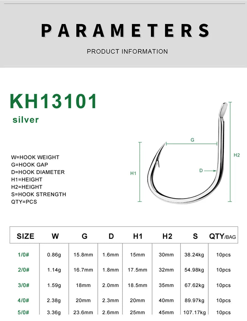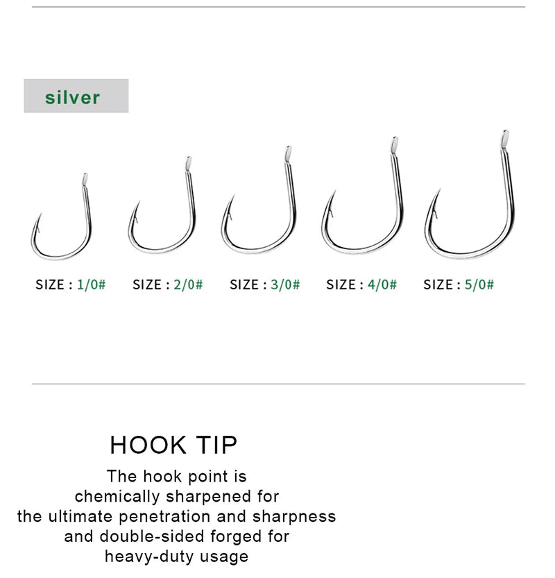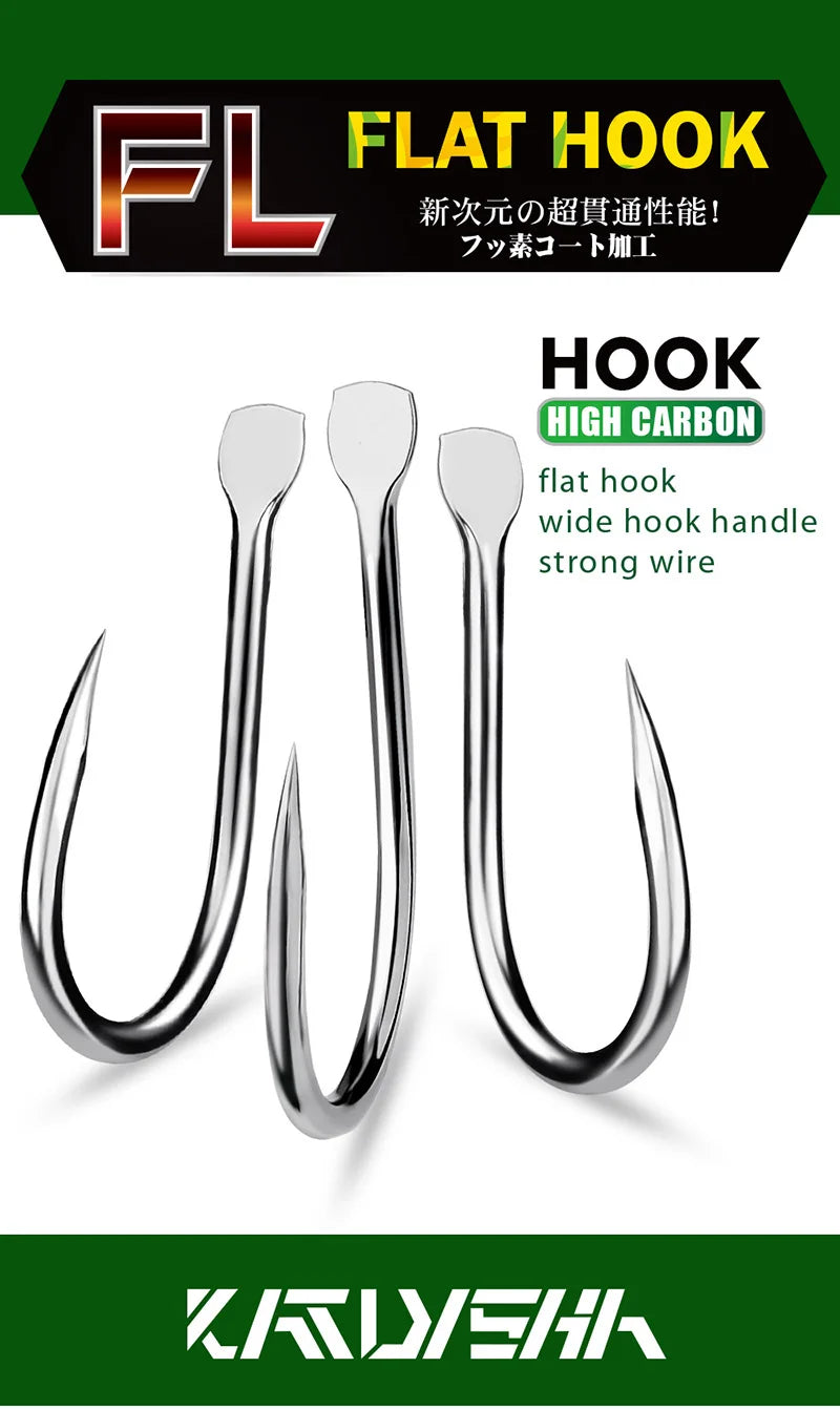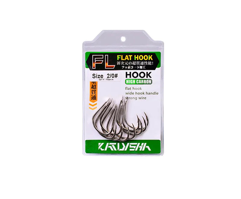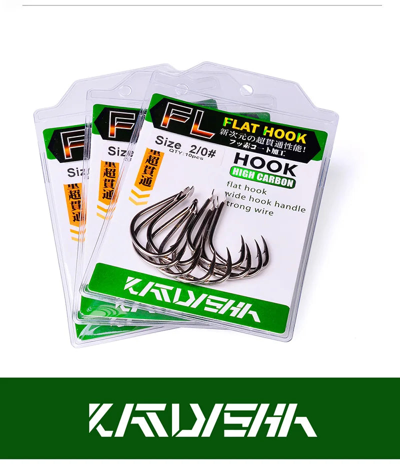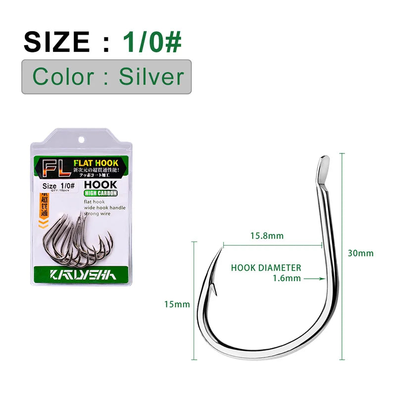 KATUYSHA 10Pcs Barbed Fishing Hooks1/0-5/0# Flatted Single Fishhooks High Carbon Steel Carp Hooks Set Accessories Tool Tackle