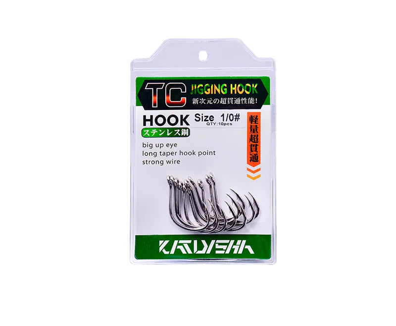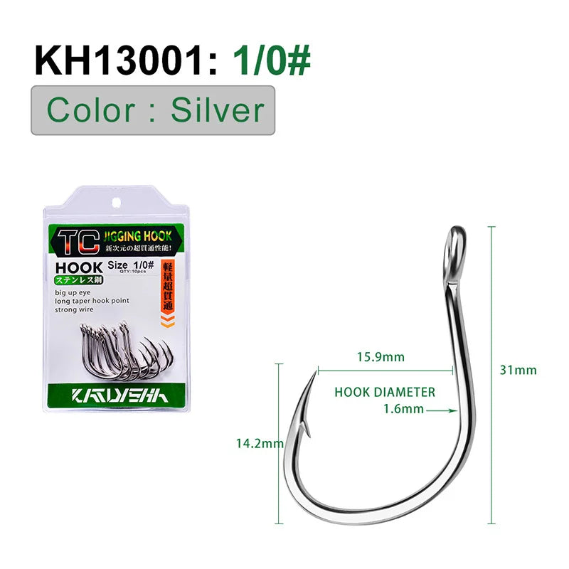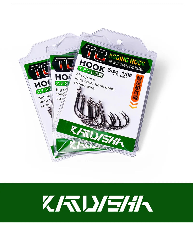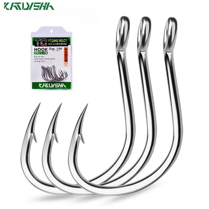 KATUYSHA 50Pcs Crank Jig Head Fishing Hooks 1/0-5/0# Barbed Single Circle Carp Hooks High Carbon Steel Fishhooks Fishing Tackle