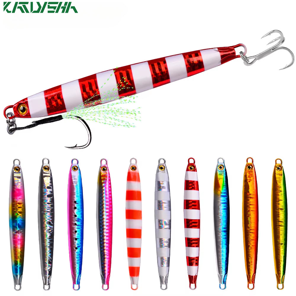 KATUYSHA 1PC Slow Cast Jigging Bait 10G-20G-30G-40G-60G-80GLong Metal Jig Fishing Lure Artificial Hard Bass Pike Fishing Tackle