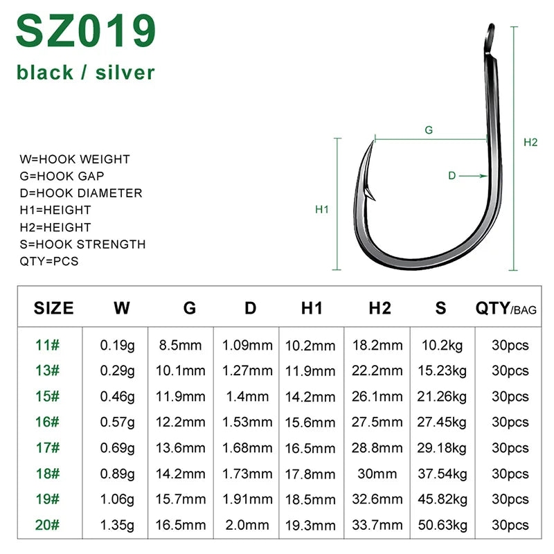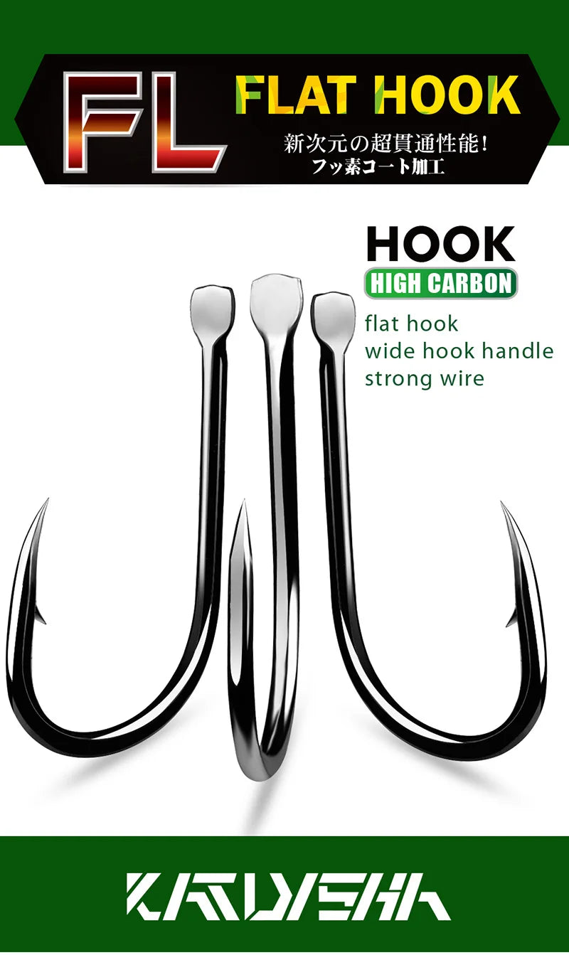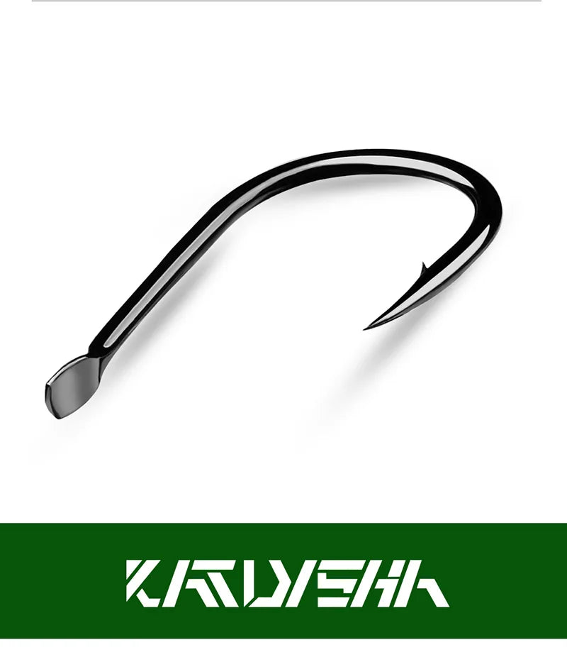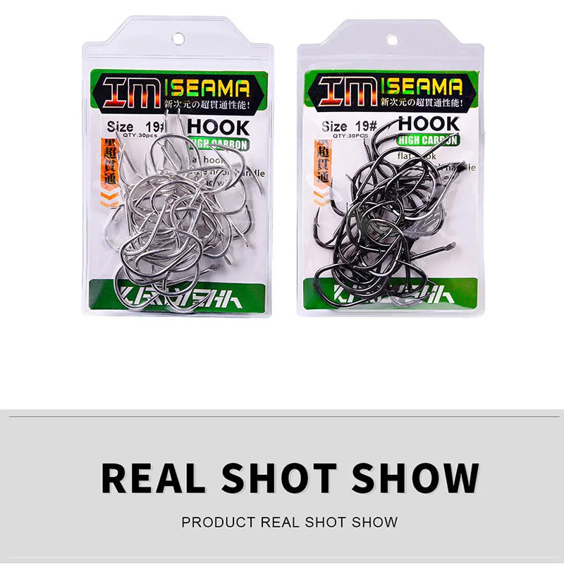 KATUYSHA 30Pcs High Carbon Steel Offset Barbed Fishhooks 11#-20# Flat Carp Fishing Hooks Single Jigging Hooks Accessories Tackle