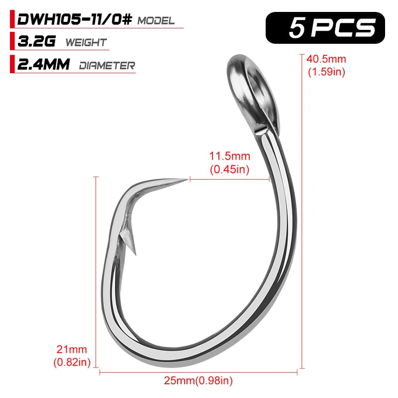 KATUYSHA 20Pcs Saltwater Fishing Hooks Circle Hooks 11/0-12/0-13/0-14/0-15/0-16/0# Stainless Steel Jigging Fishhooks