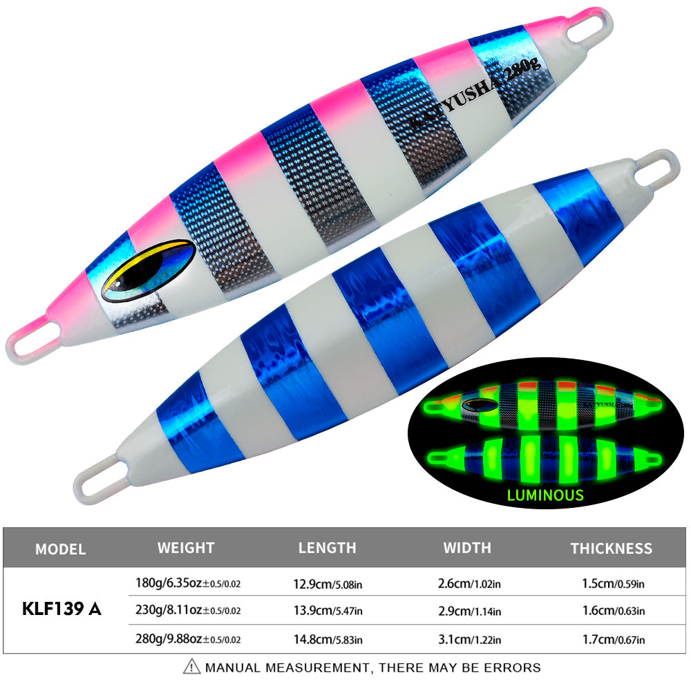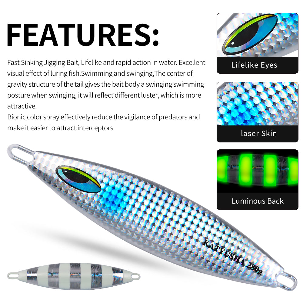 KATUYSHA 180-230-280g Long Throw Metal Lure Seawater Jigging Lure Boat Fishing Bait Glowing Sea Fishing Lure